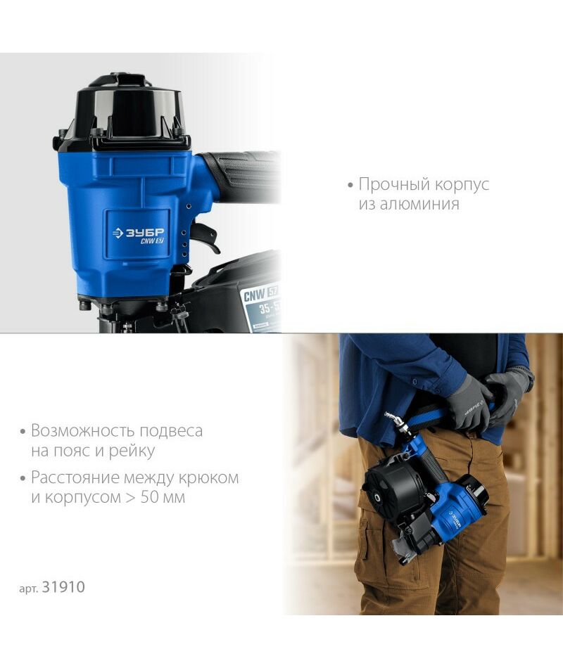 - Тип и размер гвоздей: CNW(35-57 мм)