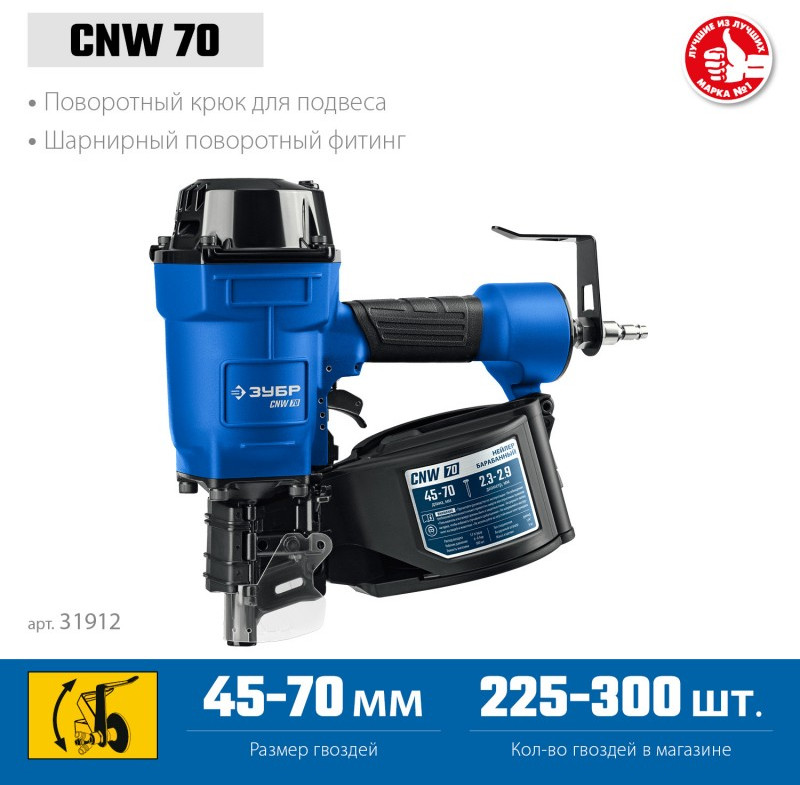 Пневматический нейлер Зубр Профессионал CNW-70 для барабанных гвоздей CNW (45-70 мм) [31912]