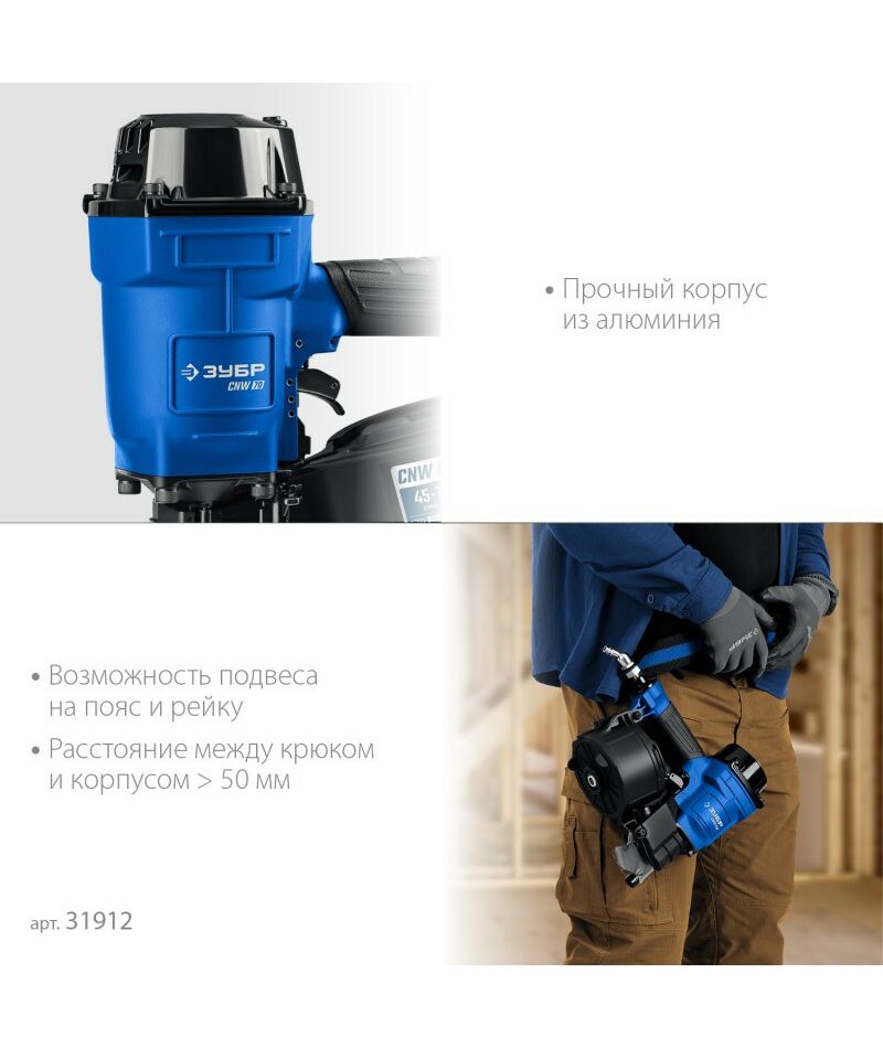 - Тип и размер гвоздей: CNW(45-70 мм)