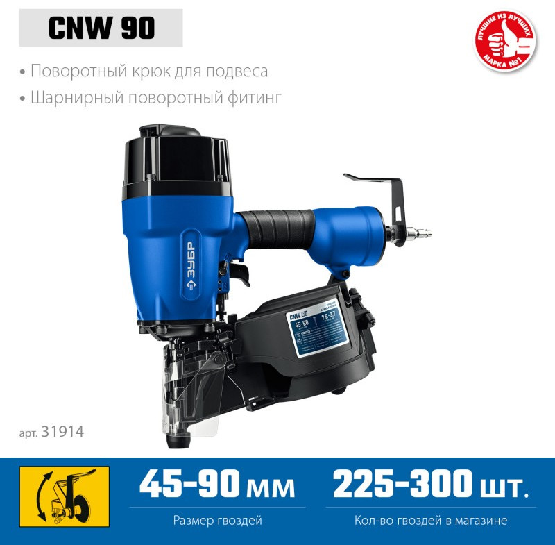 Пневматический нейлер Зубр Профессионал CNW-90 для барабанных гвоздей CNW (45-90 мм) [31914]