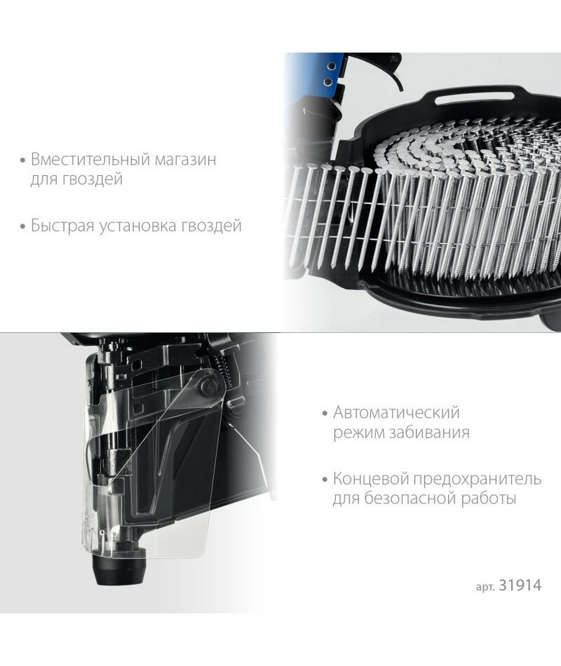 - Тип и размер гвоздей: CNW(45-90 мм)