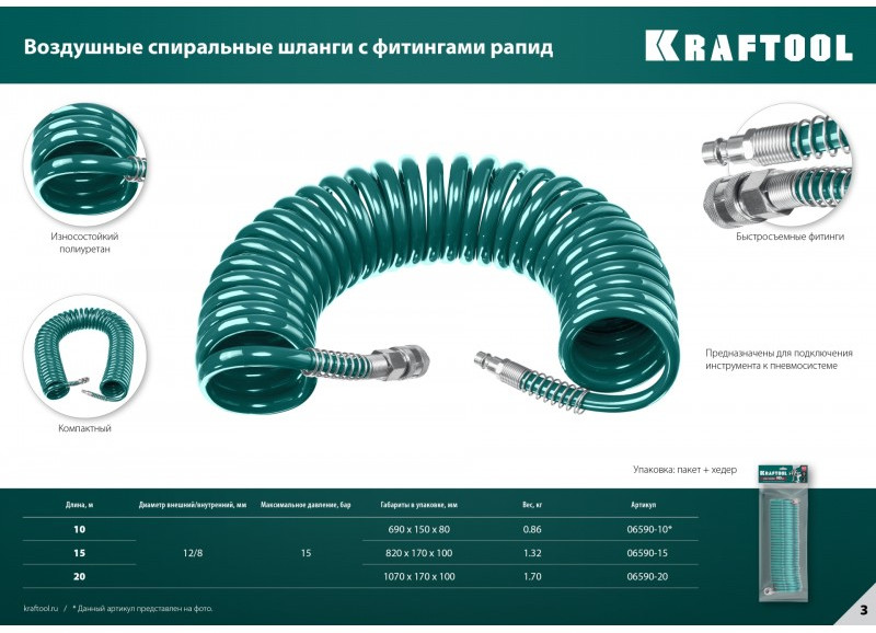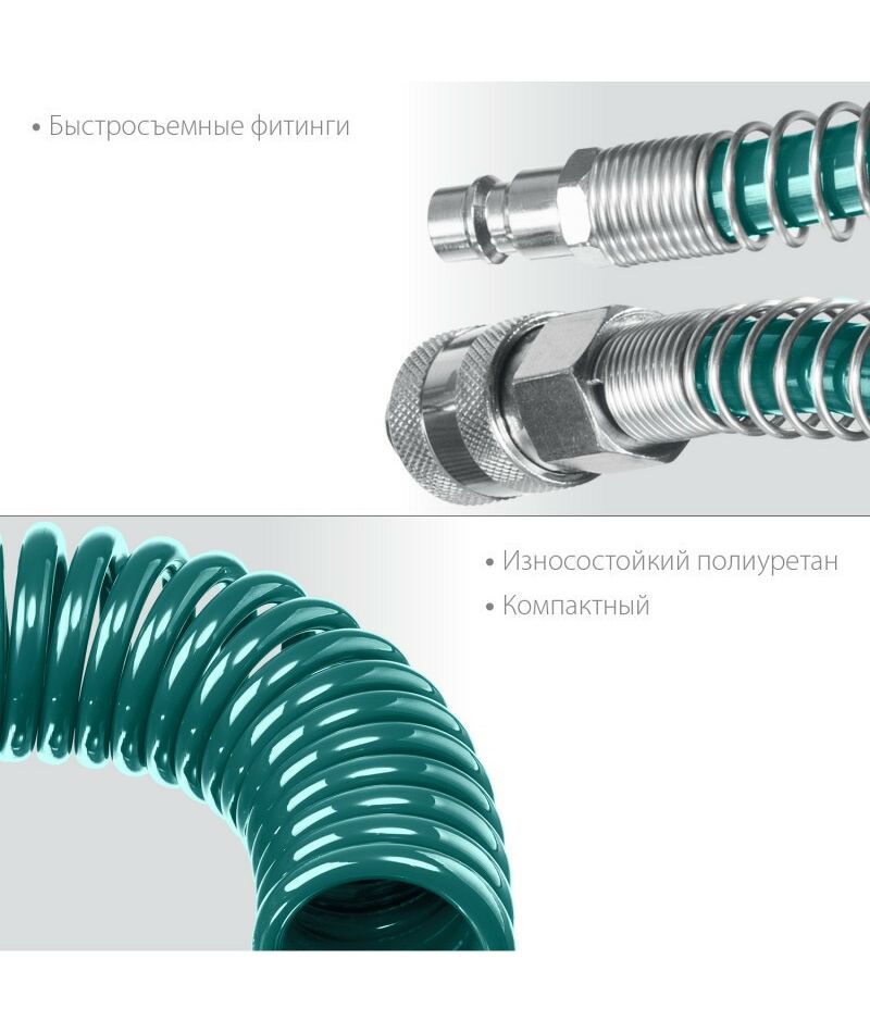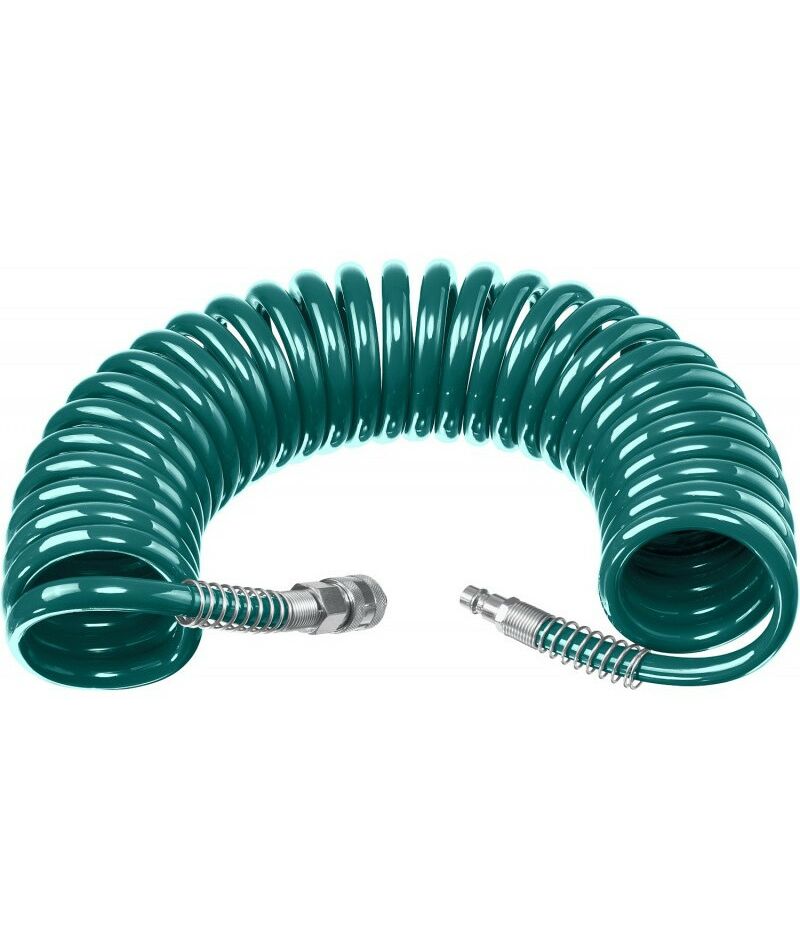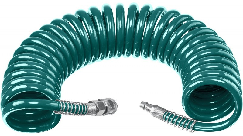 Воздушный спиральный шланг с фитингами рапид KRAFTOOL 10 м 8х12 мм, 15 бар [06590-10]