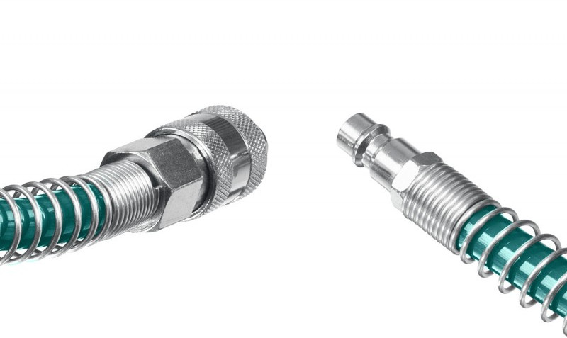 Воздушный спиральный шланг с фитингами рапид KRAFTOOL 20 м 8х12 мм, 15 бар [06590-20]