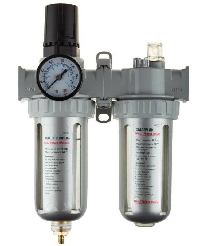 - Профессиональный инструмент для работ в автосервисах, шиномонтажах и СТО. Применяется для осушения воздуха и смазки пневмоинструмента, а также контроля за давлением в пневмосистемах