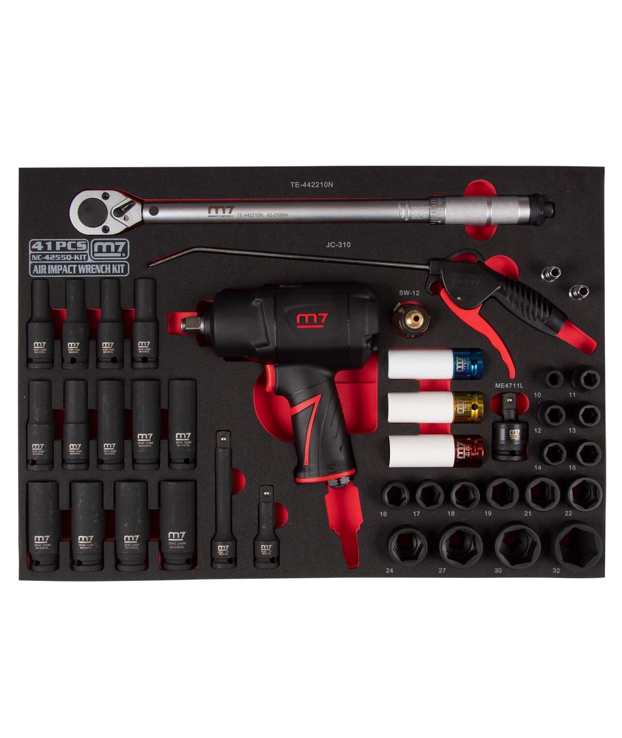 Набор пневмоинструмента 1/2" с принадлежностями MIGHTY SEVEN NC-4255QA ложемент, 41 предмет