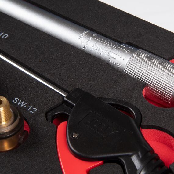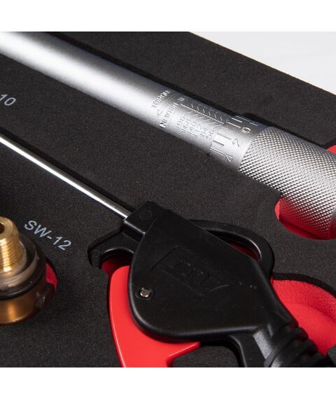 | Материалы | инструментальная сталь Cr-Мо (головки, удлинители, кардан), пластик (продувочный пистолет, защита головок), латунь, плексиглас (лубрикатор), EVA (ложемент) |