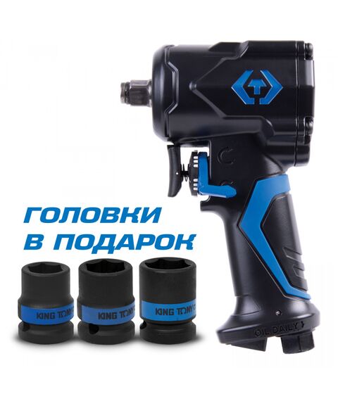Гайковерт пневматический ударный King Tony P33431-050B 1/2", 678 Нм, в комплекте 3 торцевые головки