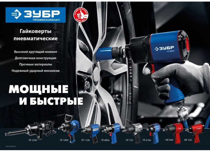 Ударный пневматический гайковерт Зубр МГ-600 1/2", 600 Нм [64280]