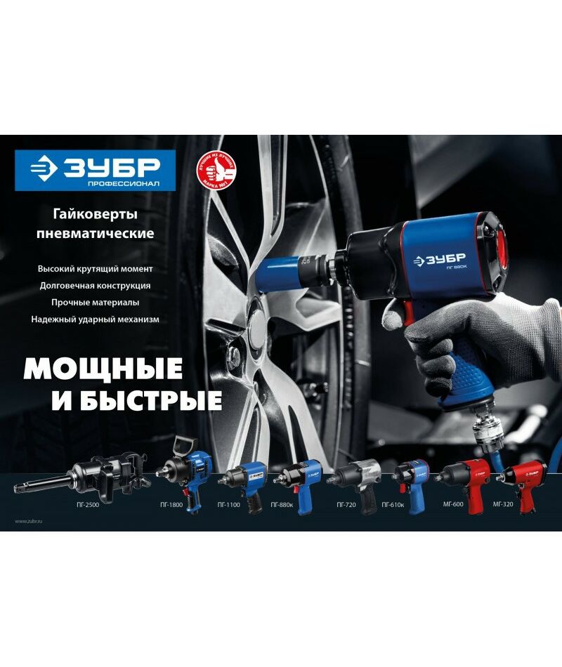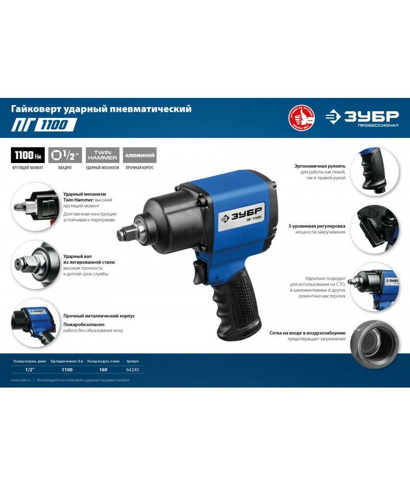 Ударный пневматический гайковерт Зубр ПГ-1100 1/2", 1100 Нм [64240]
