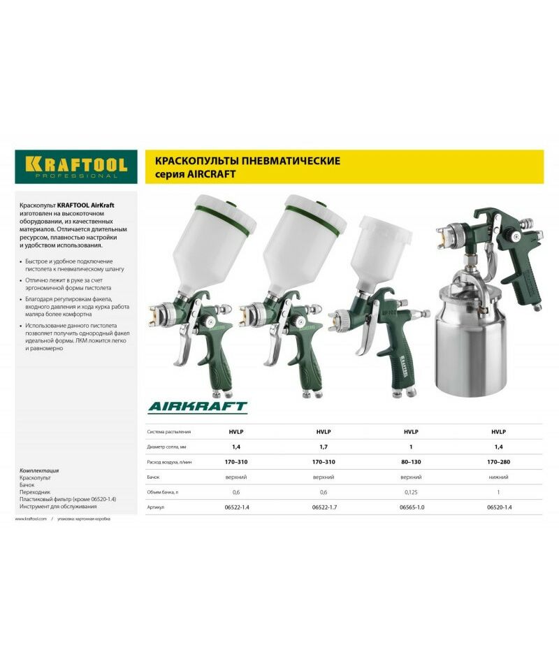 Краскопульт пневматический KRAFTOOL AirKraft Mini 1 мм HVLP, c верхним бачком [06565-1.0]