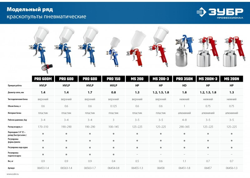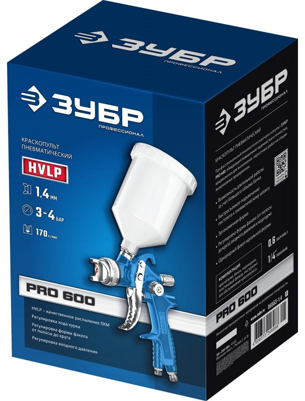 Пневматический краскопульт Зубр PRO 600 HVLP, 1.4 мм, с верхним бачком [06563-1.4]