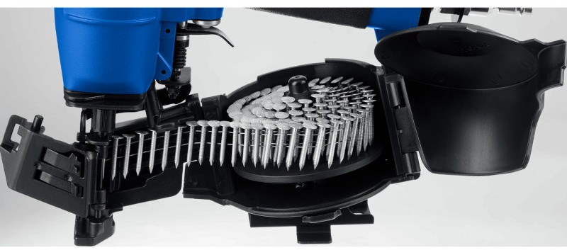 Нейлер пневматический кровельный предназначен для кровельных работ с гвоздями барабанного типа длинной 22-45 мм, в частности монтажа гибкой черепицы. Справится с ремонтом, соединением других деревянных деталей.