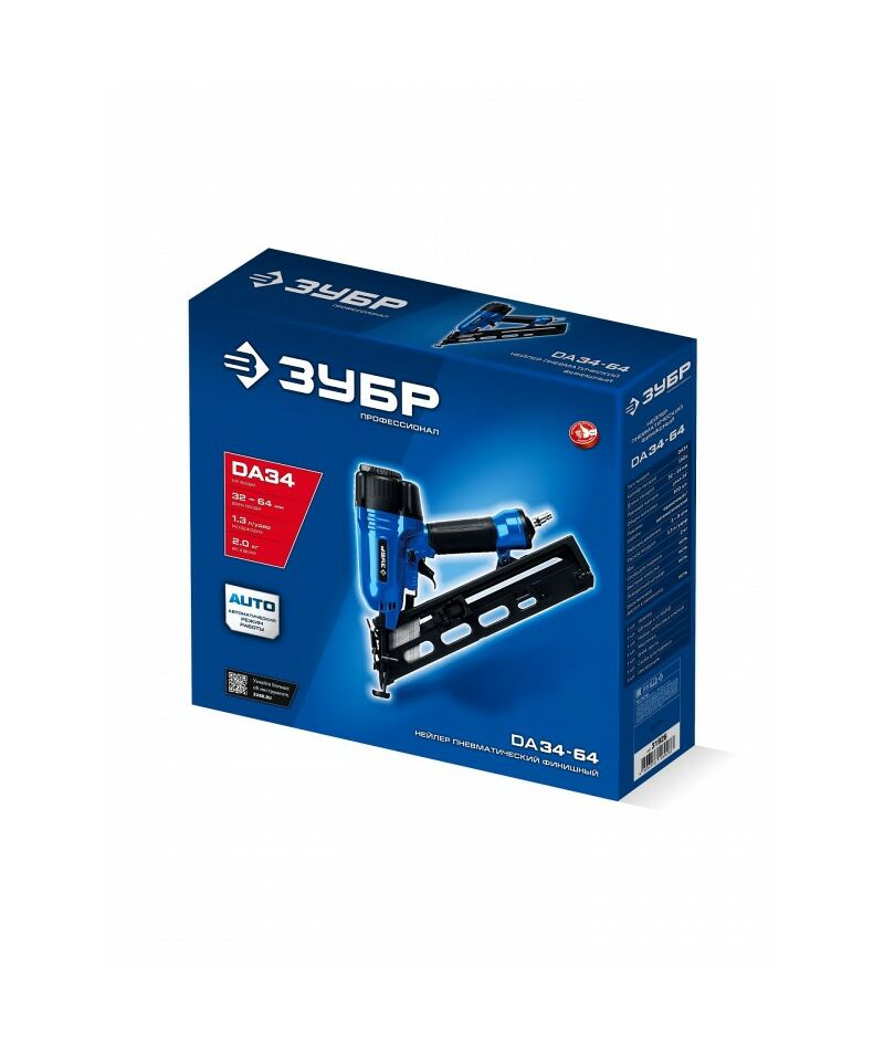 Пневматический финишный нейлер Зубр Профессионал DA34-64 для реечных гвоздей ЗУБР 15Ga, DA34 (32-64 мм) [31926]