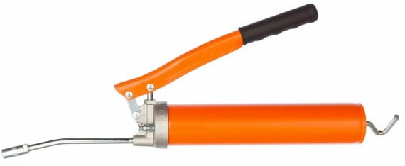 Профессиональный плунжерный шприц - это специализированное устройство для смазывания различных деталей в узлах и агрегатах при обслуживании автомобилей. Шприц прост и удобен в использовании. Смазочный материал плавно подается при нажатии на рычаг