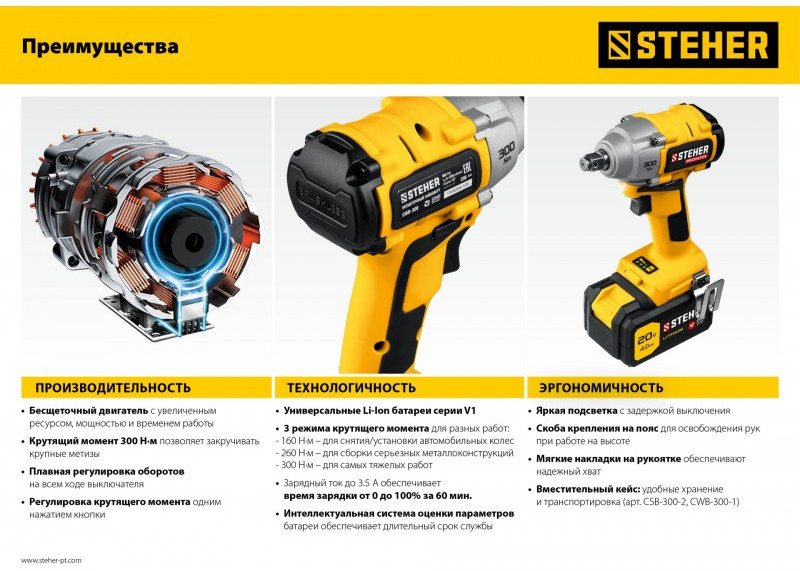 Бесщёточный винтоверт STEHER CSB-300 20В, без АКБ, в коробке