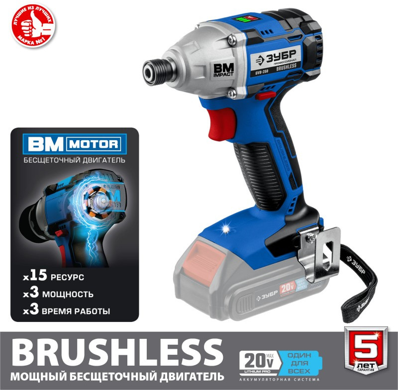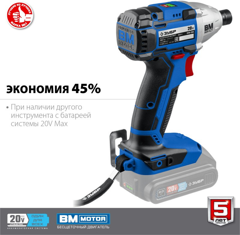 Бесщеточный винтоверт Зубр Профессионал GVB-250 20В, без АКБ, в коробке