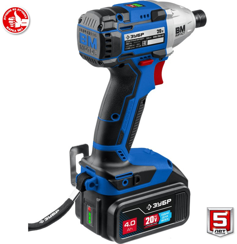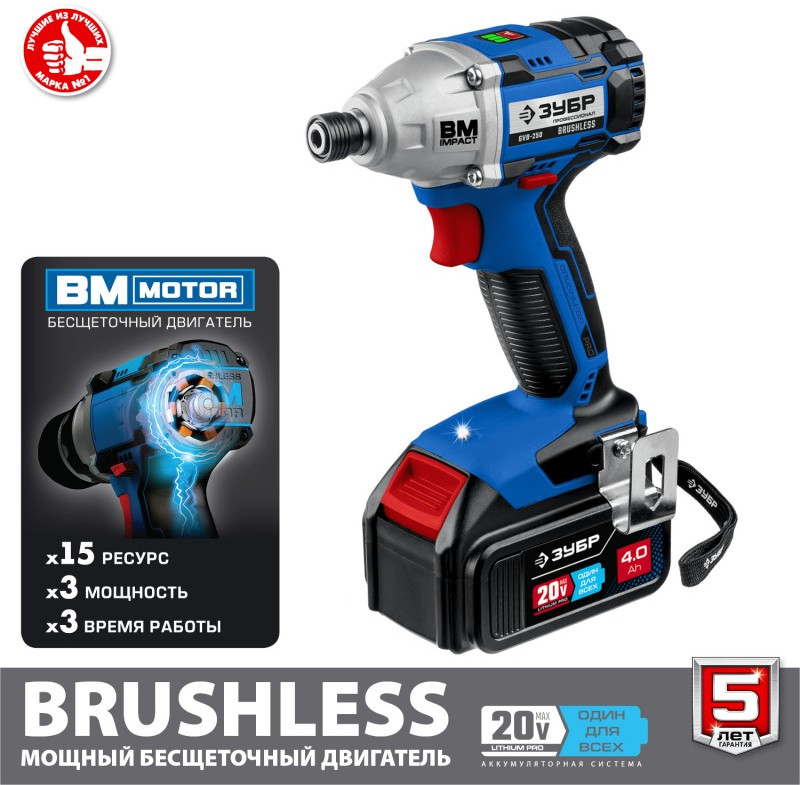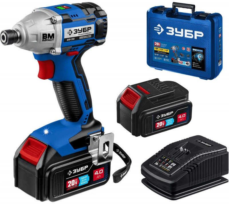 Бесщеточный винтоверт Зубр Профессионал GVB-250-42 20В, 2 АКБ (4Ач), в кейсе