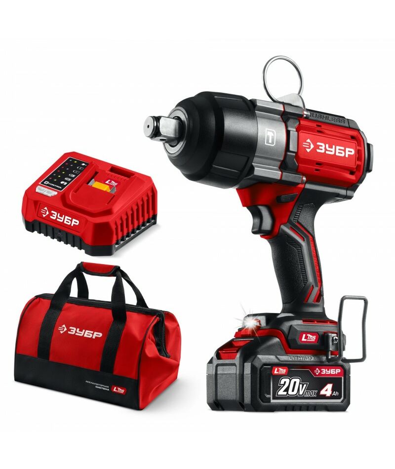 Бесщеточный ударный гайковерт Зубр ГБУ-1000-41 ЗУБР 20 В, 1000 Н·м, 1 АКБ LMS (4 А·ч), сумка