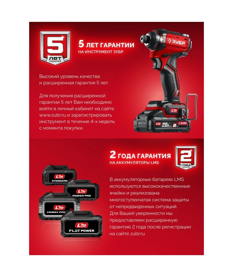 Бесщеточный ударный винтоверт Зубр ВБУ-180-21 ЗУБР 20 В, 180 Н·м, 1 АКБ LMS (2 А·ч), сумка