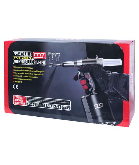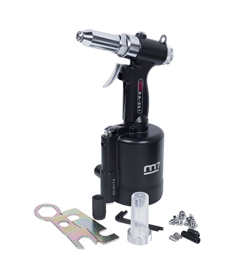 Пневмогидравлический заклепочник MIGHTY SEVEN PA-201V для заклепок диаметром 2,4 до 6,4 мм, пневмоудержание заклепки