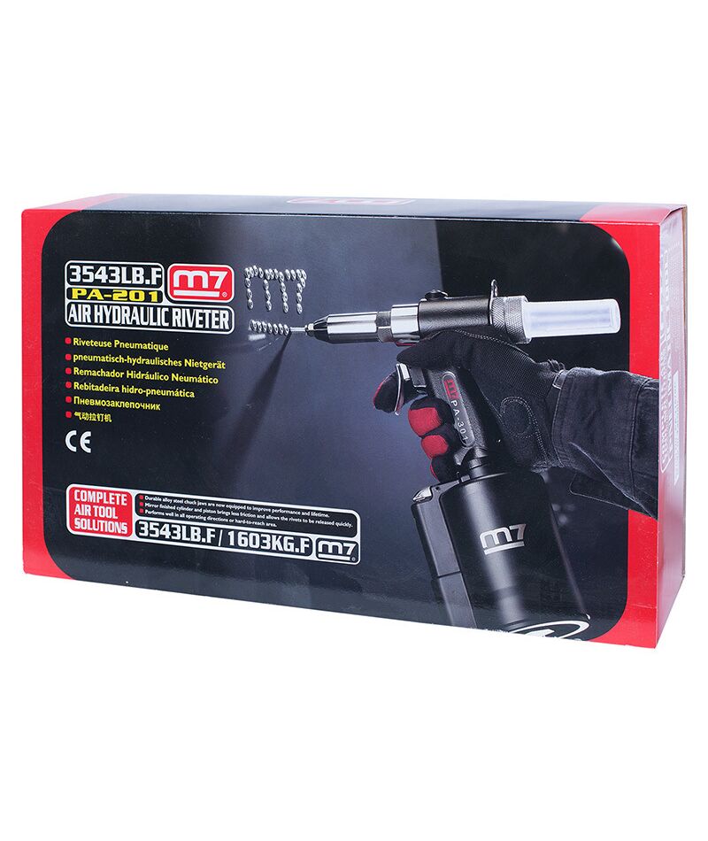 Пневмогидравлический заклепочник MIGHTY SEVEN PA-201 работает с вытяжными заклепками различного диаметра. Пневмозаклепочник легок и удобен в эксплуатации, а благодаря небольшим габаритам и весу не вызывает затруднений при хранении и перемещении. Прочный металлический корпус гарантирует долгий срок службы устройства.