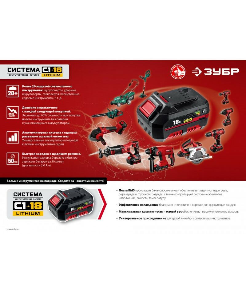 - Полностью цифровое интеллектуальное устройство для бережной и максимальной (в отличие от устройств другого типа) зарядки батареи - для полной отдачи Вашего инструмента ЗУБР