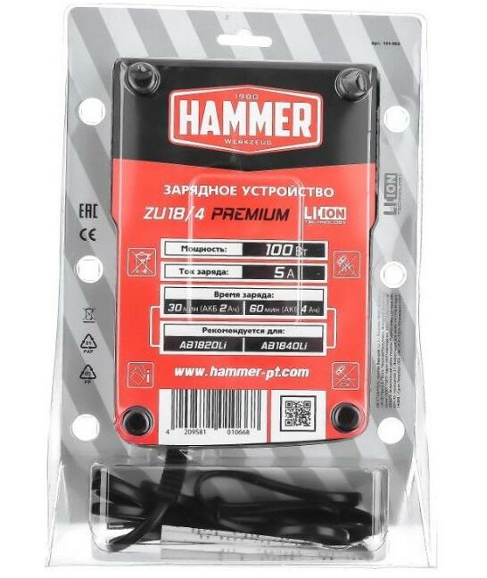 - 583518 Аккумулятор HAMMER AB1840Li PREMIUM 18.0В 4.0Ач, время заряда 60 мин