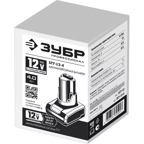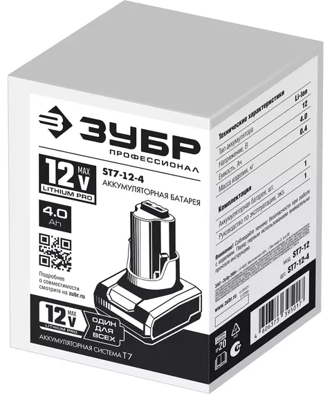 | Совместимость | Для Зубр 12V LITHIUM MAX PRO |