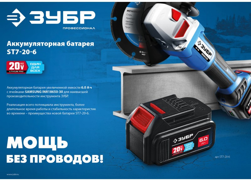 Аккумуляторная батарея Зубр Профессионал ST7-20-6 T7, 20 В, 6.0 А·ч