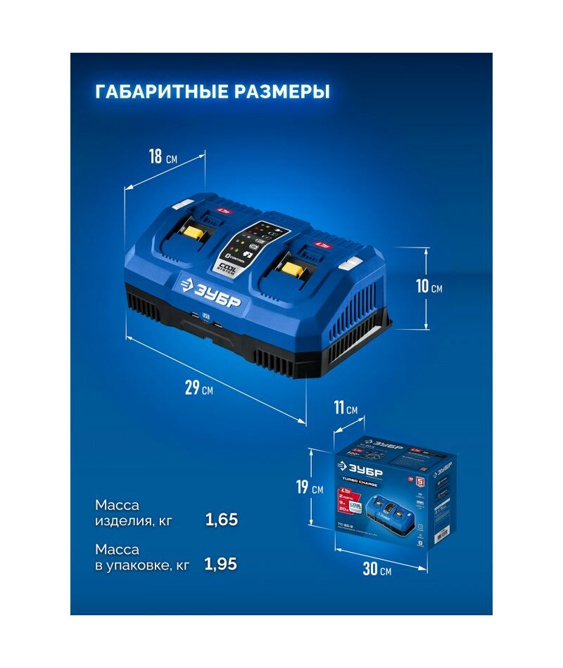 Зарядное устройство Зубр TC-20-2 ЗУБР Turbo CHARGE, 20 В, 2 порта, 2 х 9 А, для LMS АКБ, ПРОФЕССИОНАЛ