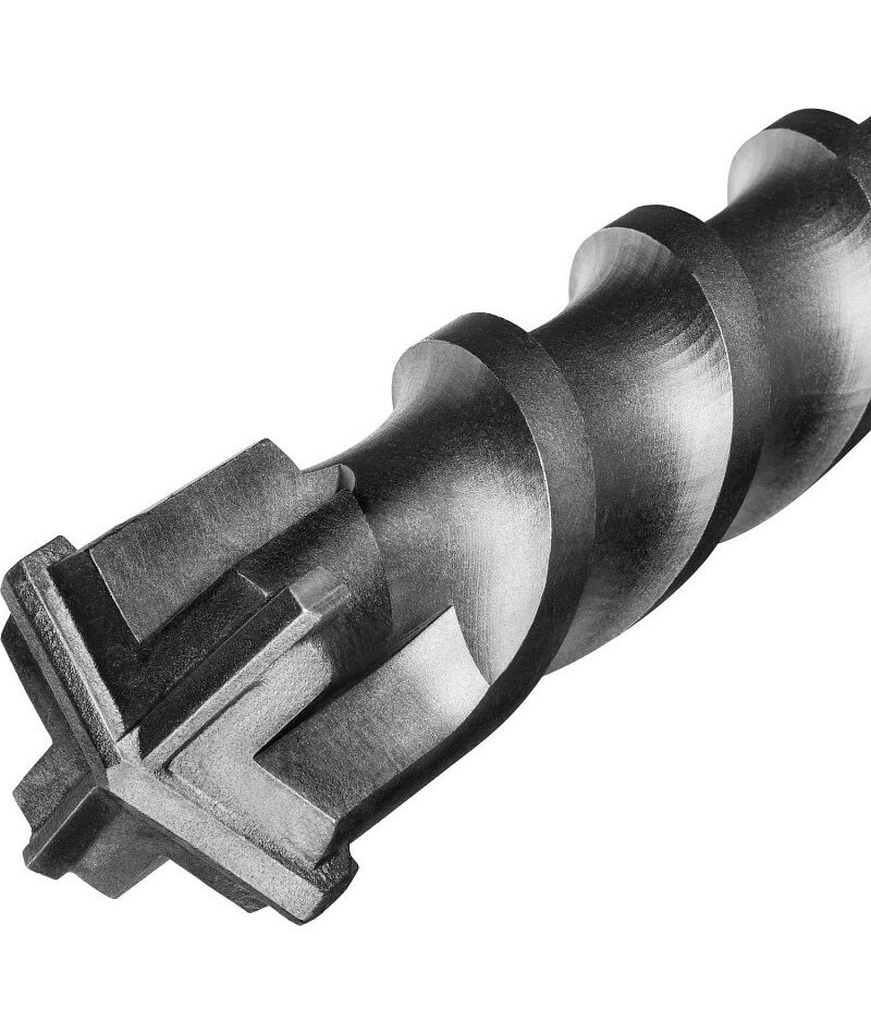 - Специальная крестообразная геометрия наконечника предотвращает подклинивание и смещение бура при работе в сверхпрочных материалах.