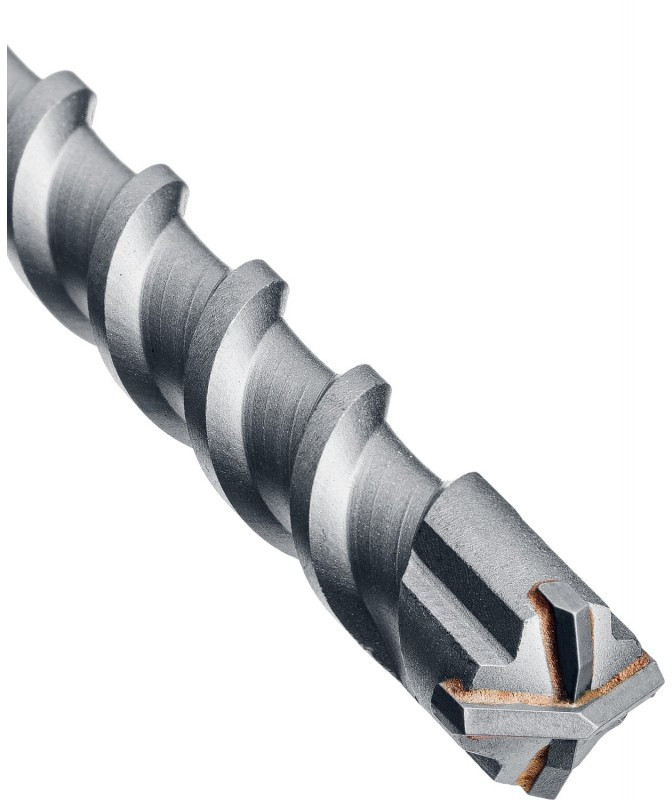 - Специальная конструкция головы бура с 4-мя режущими кромками дял уверенной работы в сверхпрочных материалах