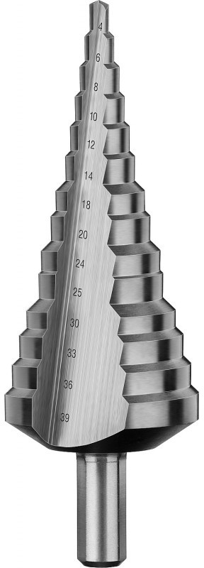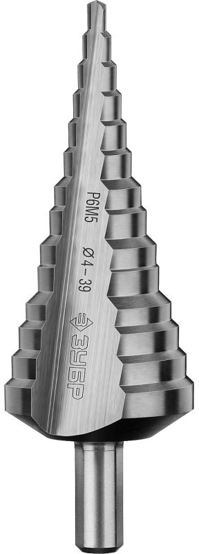 Cверло ступенчатое Зубр 29670-4-39-14 4-39 мм, 14 ступеней, сталь Р6М5