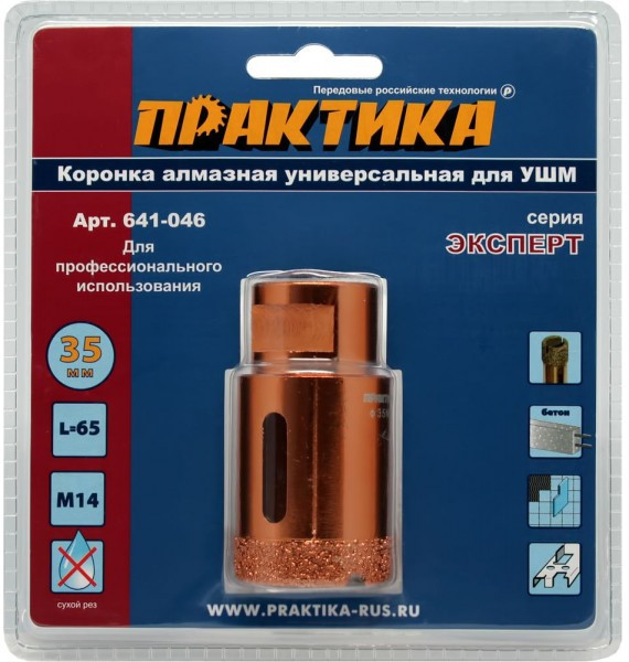 Коронка алмазная Практика 641-046 35 мм, блистер