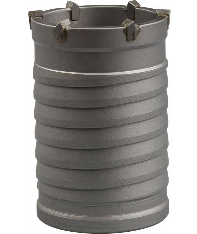 - Специальная спиралевидная форма корпуса коронки из высокопрочной стали уменьшает трение о стенки отверстия, ускоряет отвод шлама и повышает срок службы инструмента