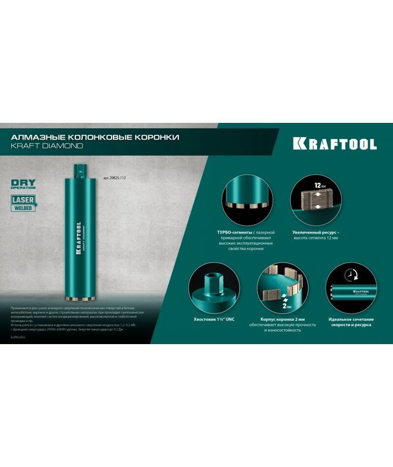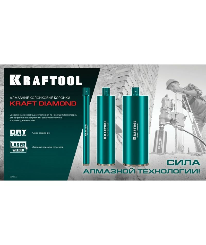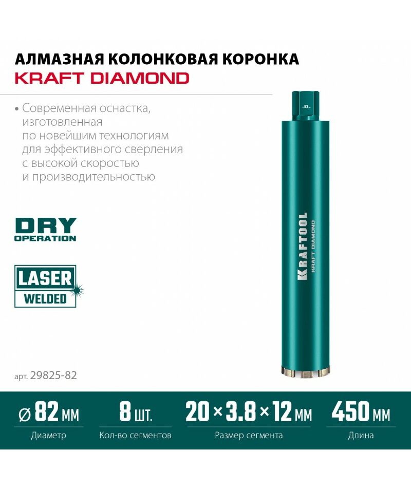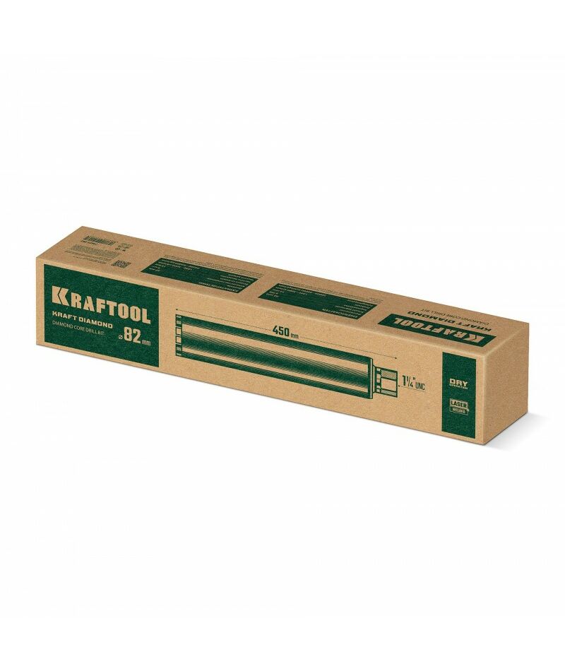 Алмазная Коронка по железобетону KRAFTOOL DIAMOND 82 мм 450 мм, 1 1/4", лазерная сварка сегментов [29825-082]