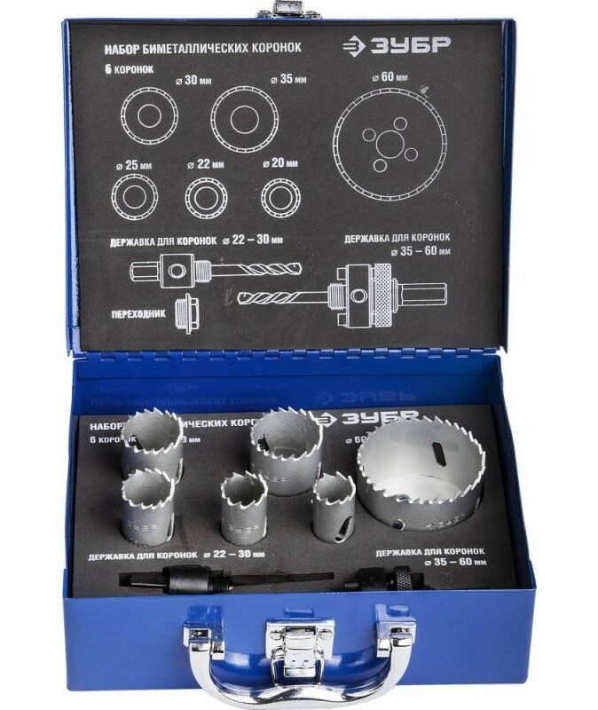 Набор коронок биметаллических Зубр 29531-H6-1 6шт, (20,22,25,30,35,60)