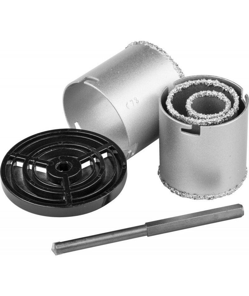 Набор применяется для получения ровных отверстий в облицовочных материалах, а также в ячеистом бетоне, кирпиче и гипсокартоне. Используется на дрелях и легких перфораторах в режиме безударного сверления.