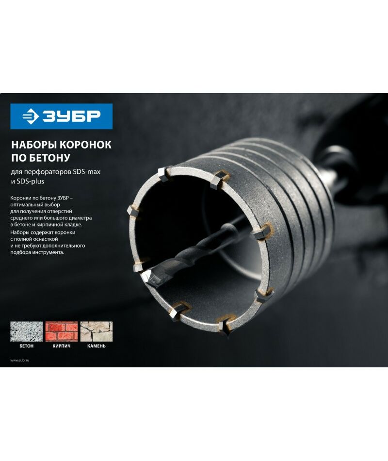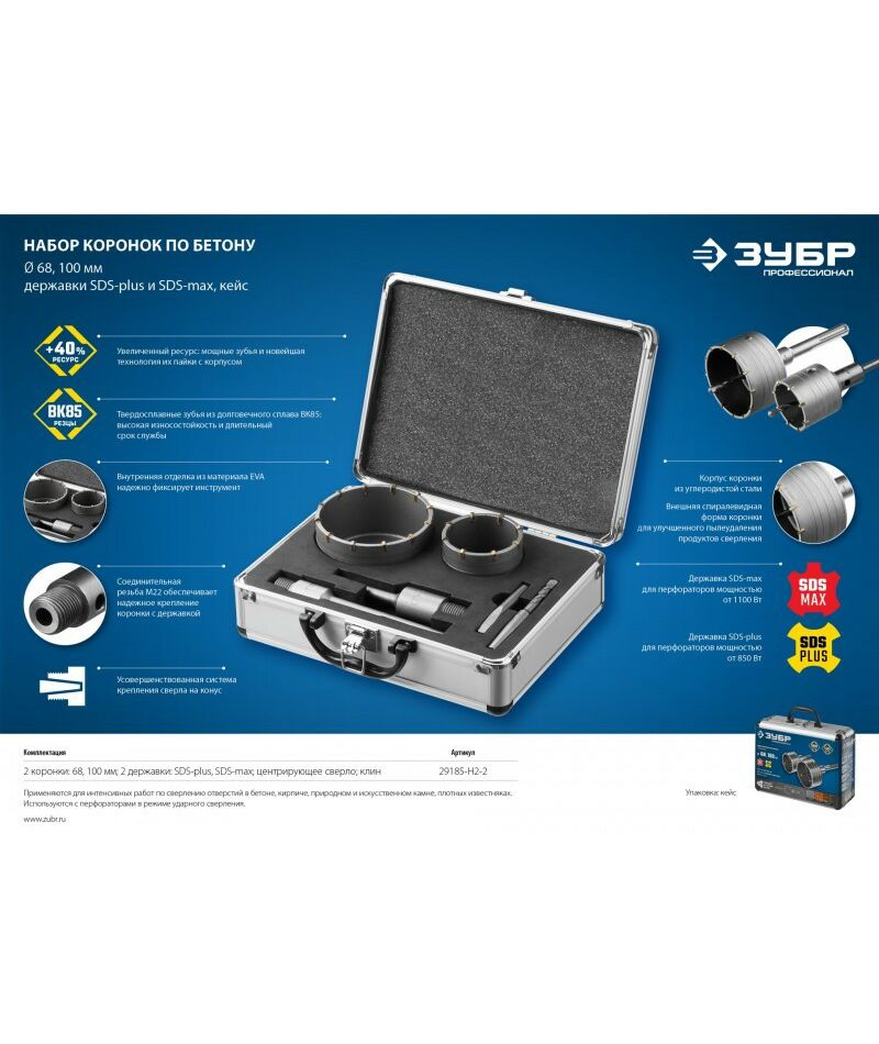 Набор коронок по бетону с оснасткой Зубр Профессионал 29185-H2-2 d = 68, 100 мм, кейс
