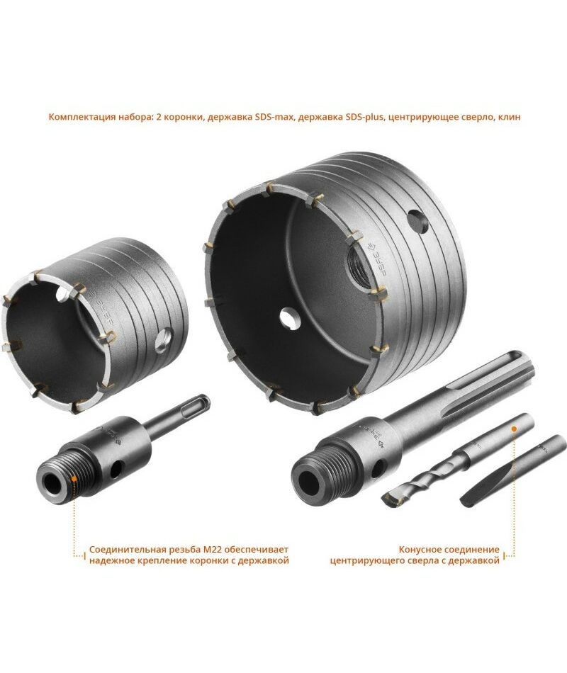 - Резьбовая посадка М22 обеспечивает надежное крепление коронки с державкой