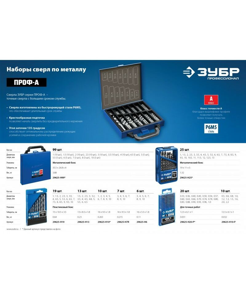 Описание Зубр ПРОФ-А 99шт 1-10мм