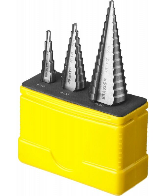 Набор сверл ступенчатых STAYER 4-30мм 3 шт, сталь HSS [29660-4-30-H3]
