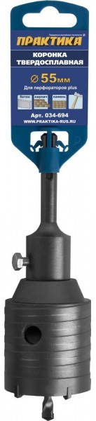 Коронка твердосплавная/бетон/кирпич Практика 034-694 55мм, Мастер