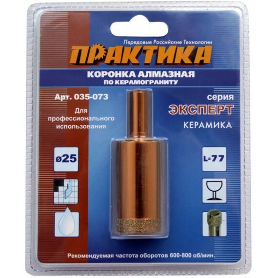 Коронка алмазная/керамогранит Практика 035-073 25мм, Эксперт