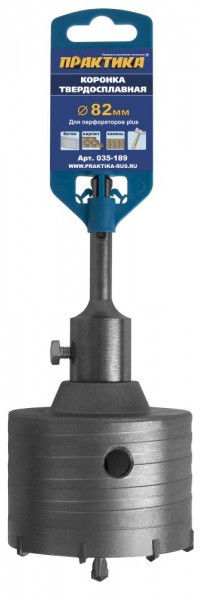Коронка твердосплавная/бетон/кирпич Практика 035-189 82мм, серия Мастер, SDS+
