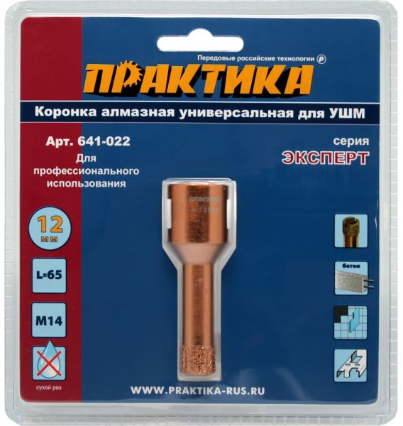Коронка алмазная Практика 641-022 12 мм, блистер