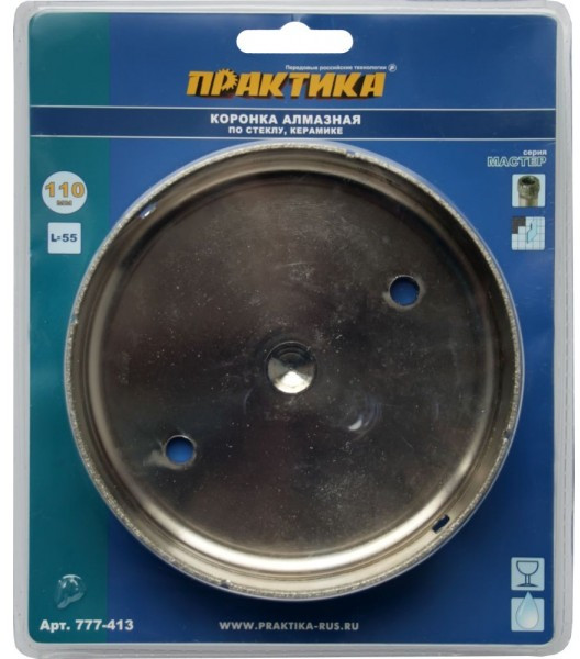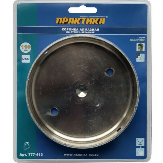Коронка алмазная Практика 777-413 "Мастер", по стеклу и керамике, 110 мм, 1шт, блистер
