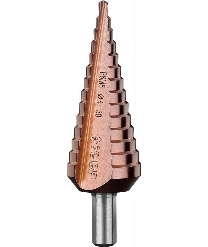 Сверло ступенчатое Зубр Профессионал КОБАЛЬТ 4-30мм 14 ступеней, кобальтовое покрытие [29672-4-30-14]