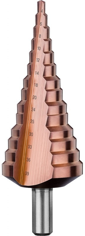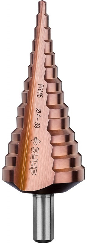 Сверло ступенчатое Зубр Профессионал КОБАЛЬТ 4-39мм 14 ступеней, кобальтовое покрытие [29672-4-39-14]
