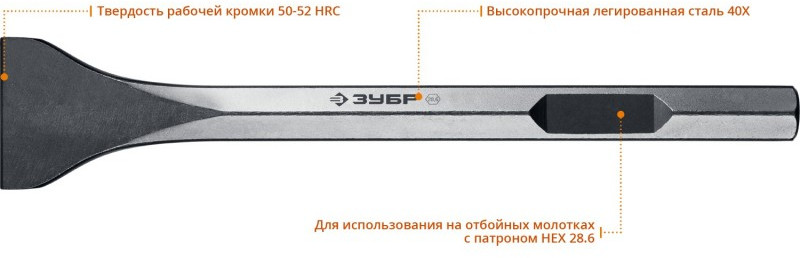 Зубило лопаточное Зубр HEX 28.6 (Макита тип) 80х400 мм [29380-80-400]